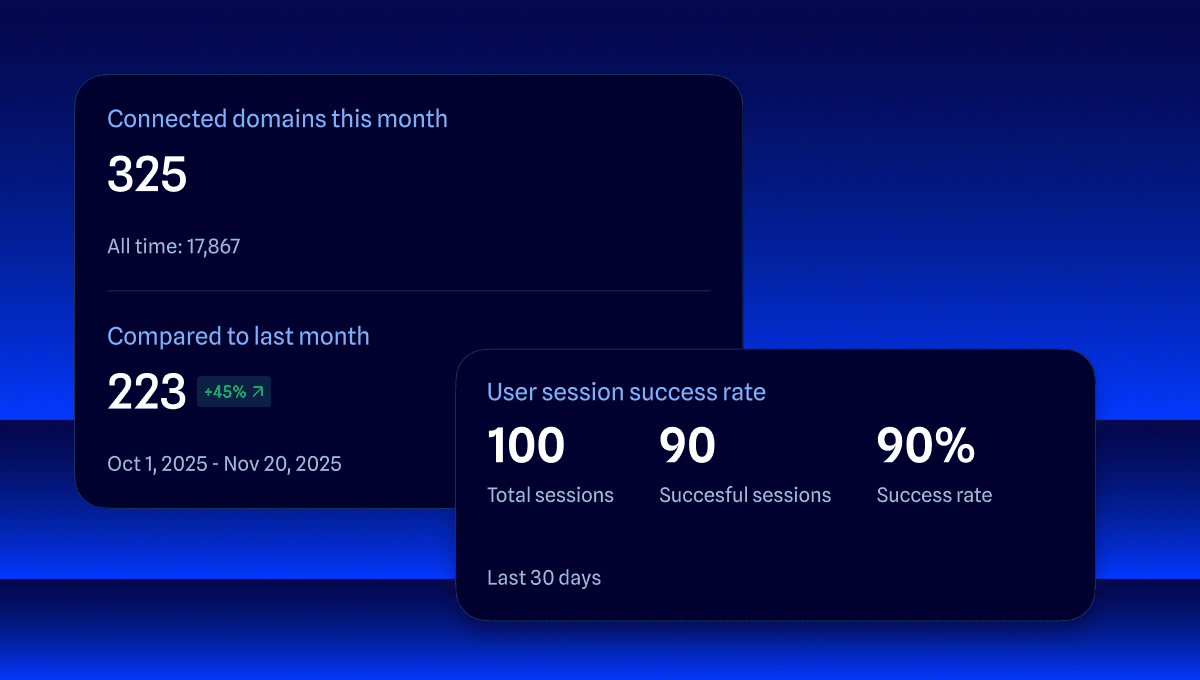 You can now view Connect flow conversion rates directly in your dashboard. These quick stats show how users progress through domain connection flows, helping you spot drop-offs and measure the impact of your onboarding improvements.
